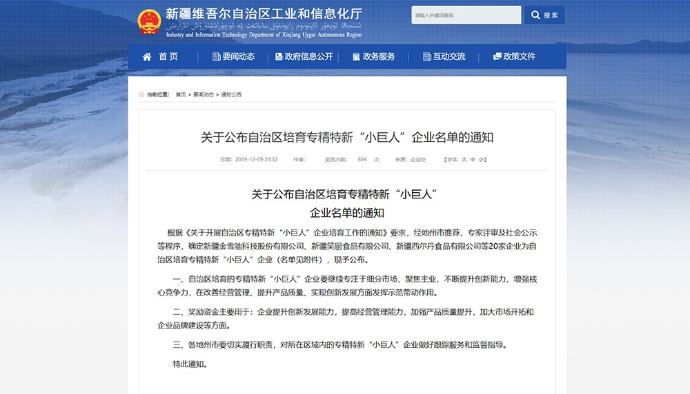 2021年獲得國家級第三批專精特新“小巨人”企業(yè)