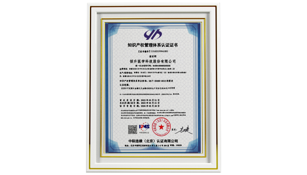 恒升醫(yī)學(xué)獲得知識產(chǎn)權(quán)管理體系認(rèn)證