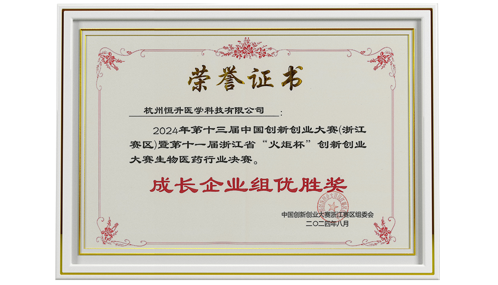 2024年第十三屆中國創(chuàng)新創(chuàng)業(yè)大賽(浙江賽區(qū))暨第十一屆浙江省“火炬杯”創(chuàng)新創(chuàng)業(yè)大賽生物醫(yī)藥行業(yè)決賽 成長企業(yè)組優(yōu)勝獎